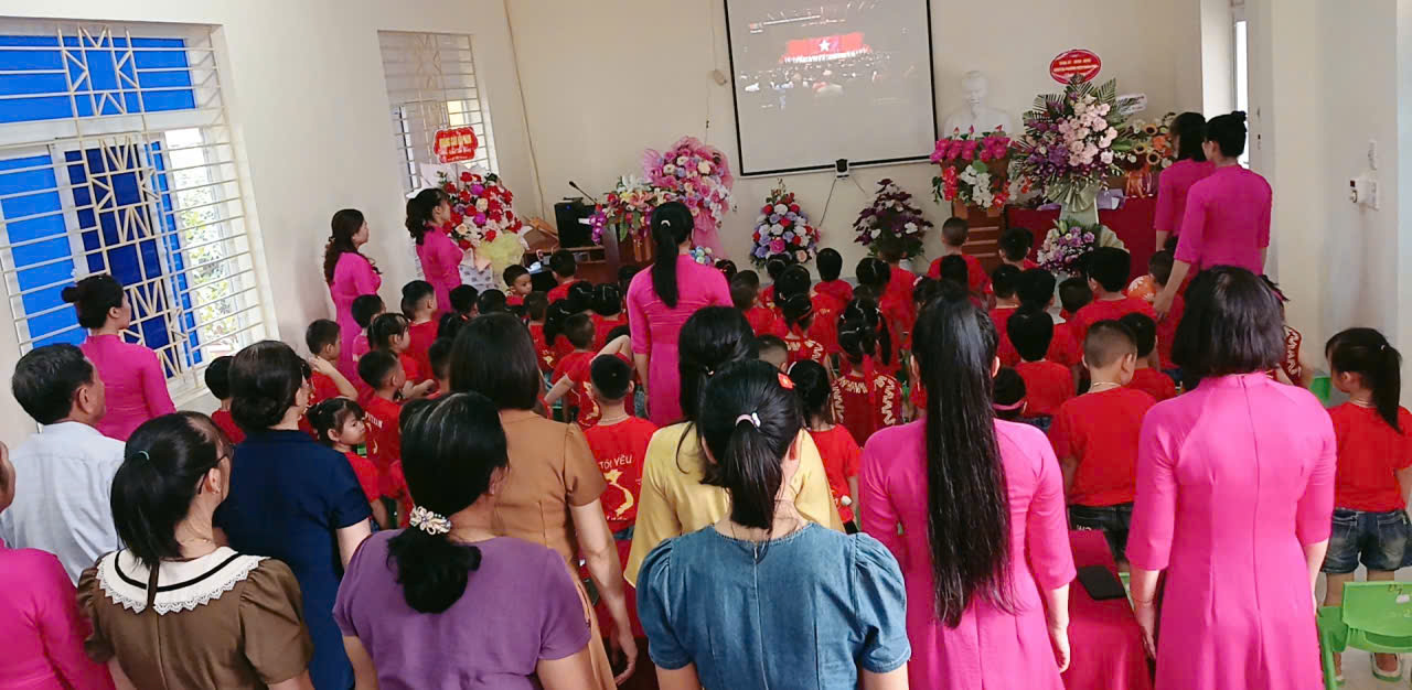 Ngay từ 7 giờ 30 phút, sân trường đã rộn ràng với các hoạt động Lễ đón chào các cháu học sinh MG 3 – 4 tuổi, phần tuyên bố lý do, giới thiệu đại biểu và những tiết mục văn nghệ chào mừng đặc sắc do các cô giáo và các cháu biểu diễn, tạo nên không khí sôi nổi, đầy hứng khởi.