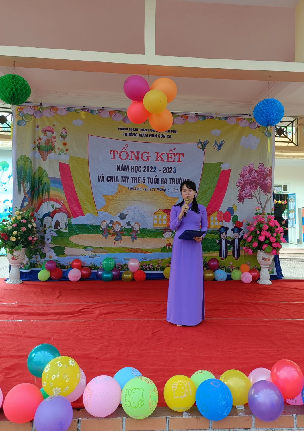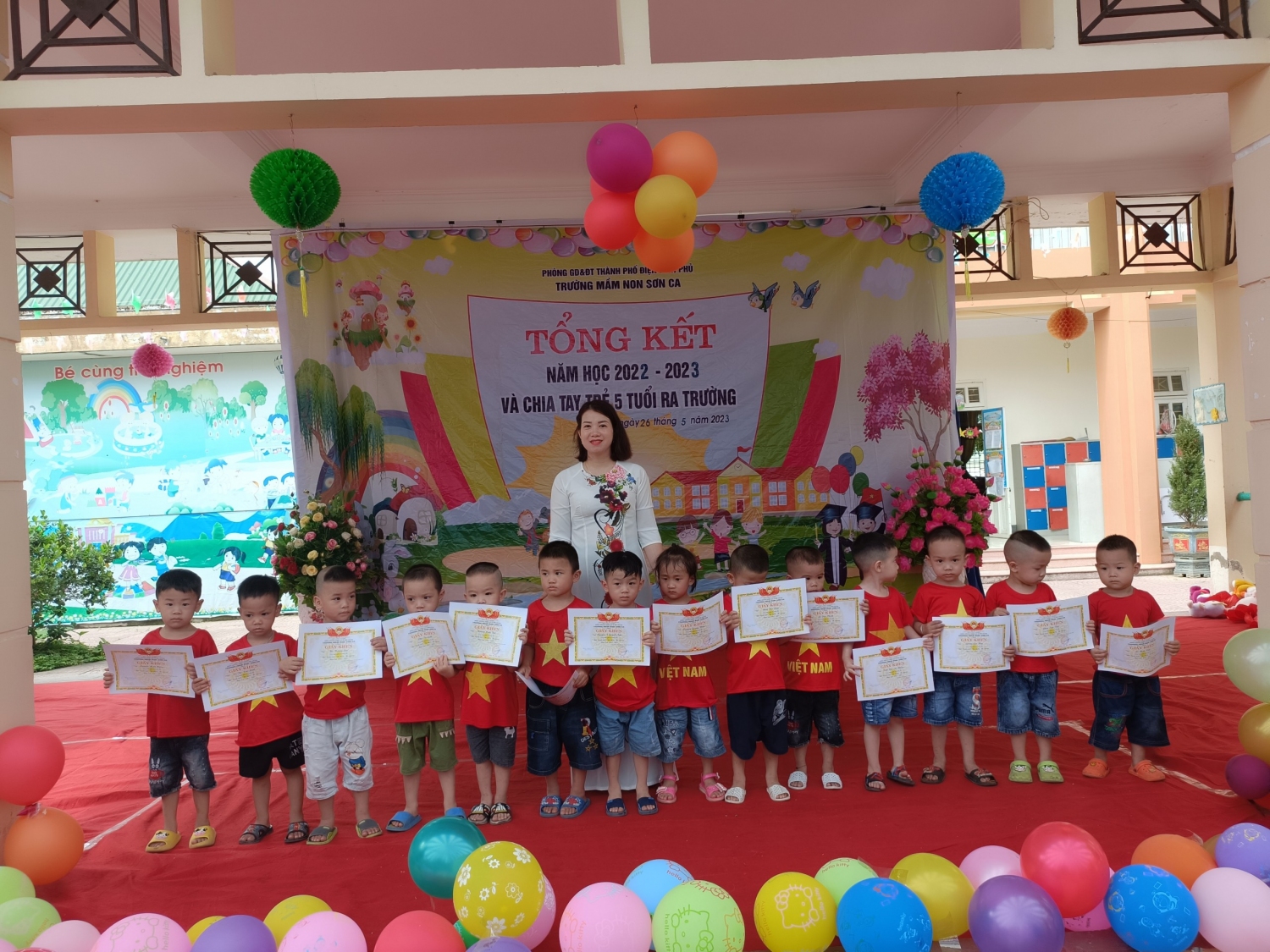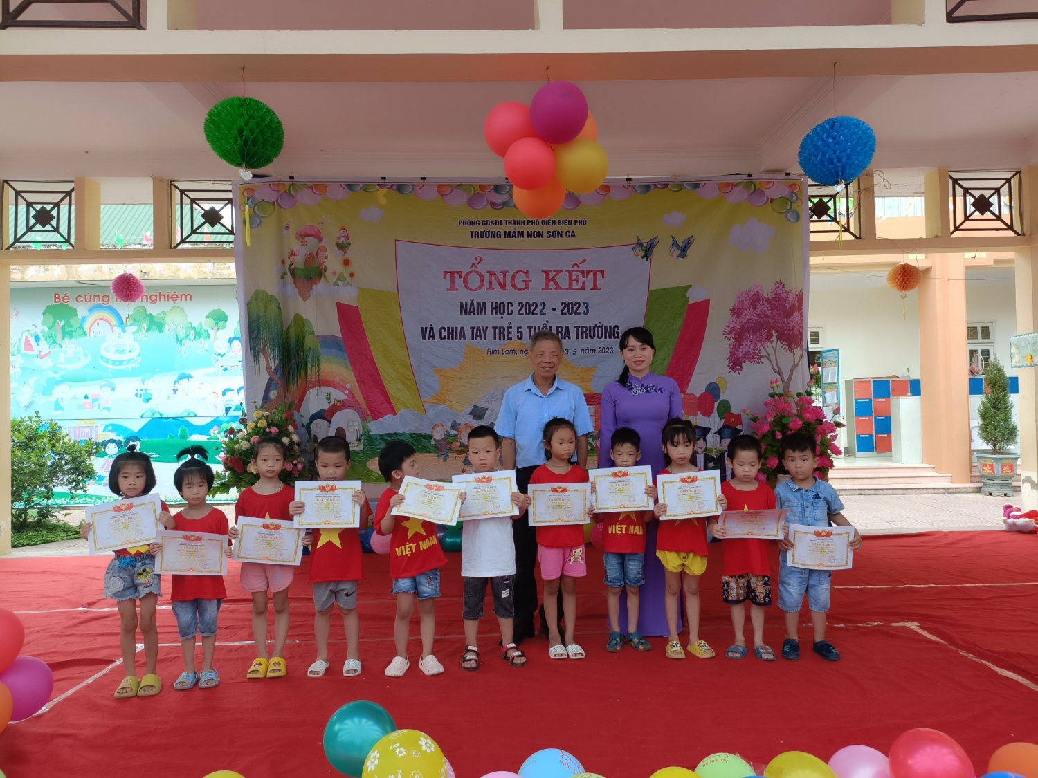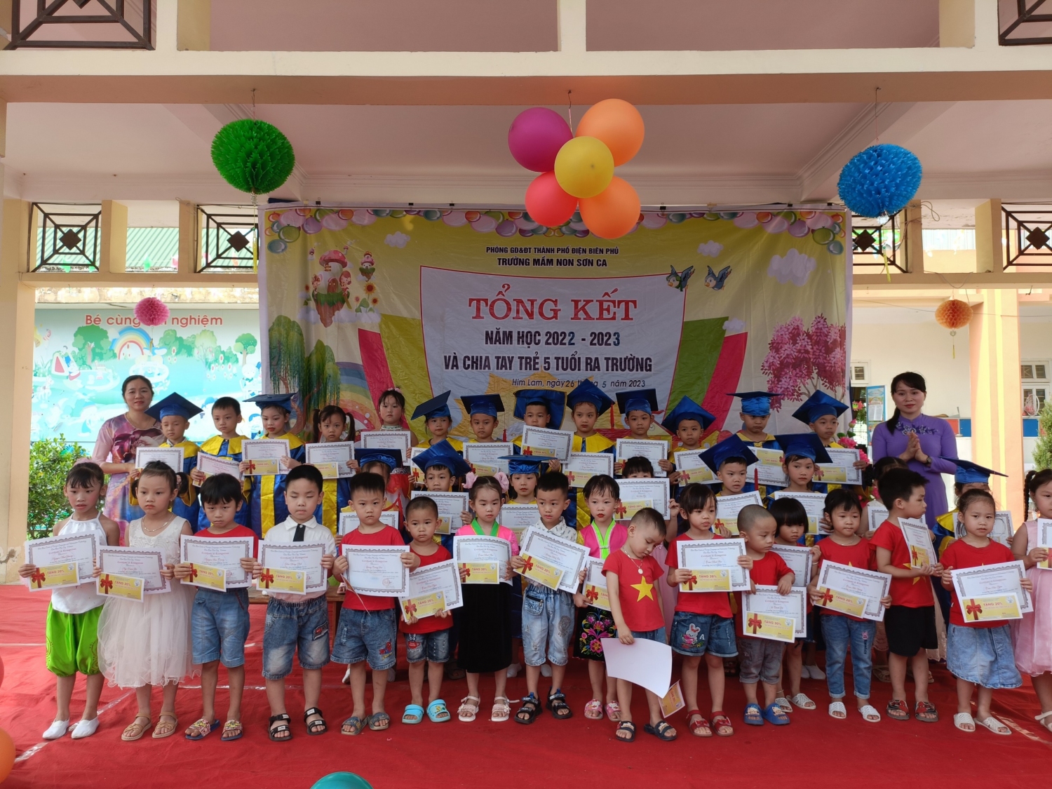 Sáng nay, ngày 26/5/2023 cô và trò Trường mầm non Sơn Ca, thành phố Điện Biên Phủ long trọng tổ chức buổi tổng kết năm học 2022 - 2023 và chia tay trẻ 5 tuổi, niên khóa 2017 – 2023 ra trường để chuẩn bị tâm thế sang Trường tiểu học.