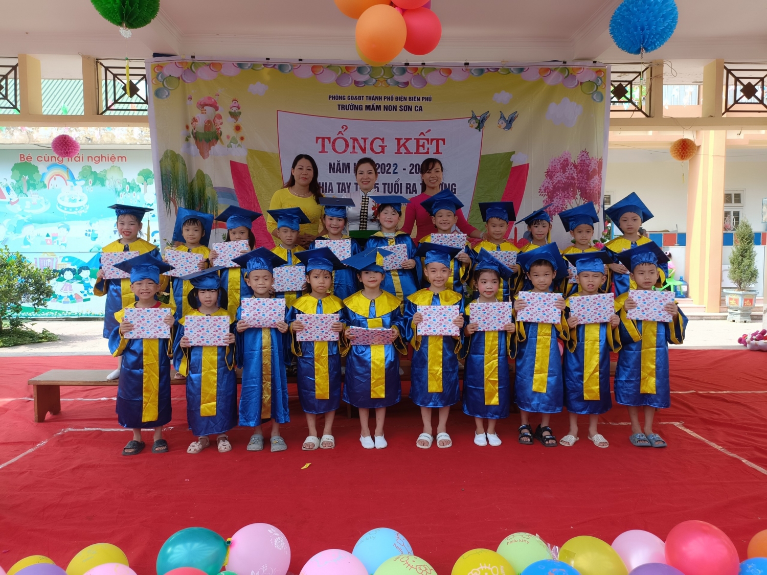 Sáng nay, ngày 26/5/2023 cô và trò Trường mầm non Sơn Ca, thành phố Điện Biên Phủ long trọng tổ chức buổi tổng kết năm học 2022 - 2023 và chia tay trẻ 5 tuổi, niên khóa 2017 – 2023 ra trường để chuẩn bị tâm thế sang Trường tiểu học.