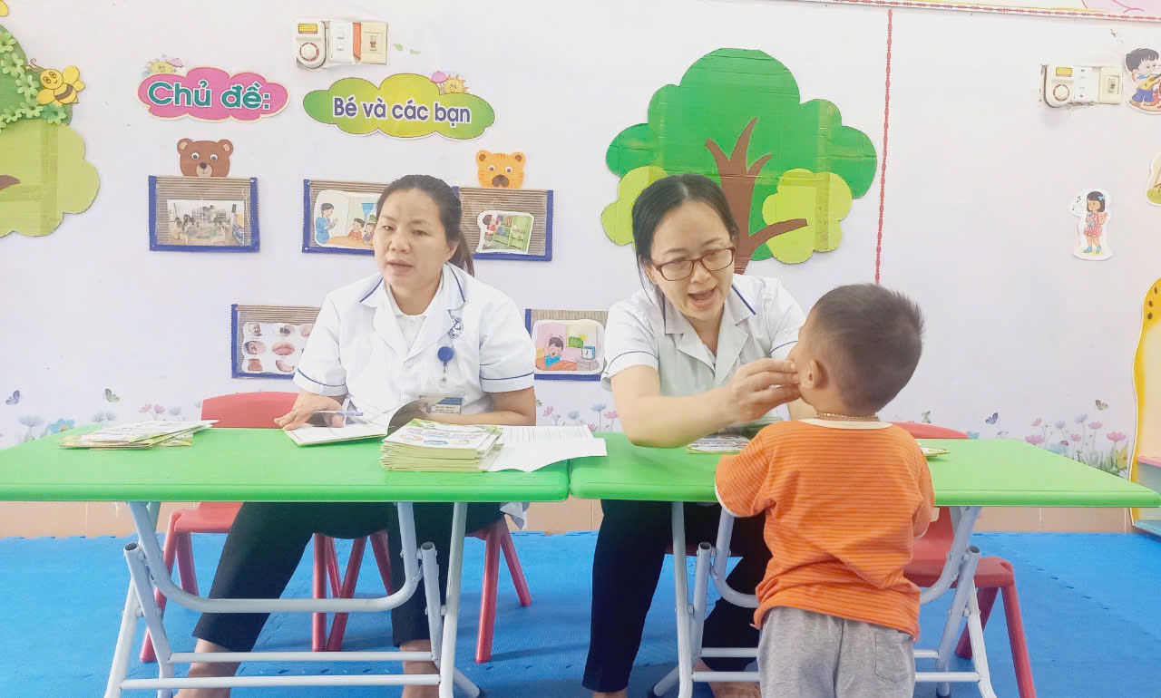 Trường Mầm non Sơn Ca TP Điện Biên Phủ Phối hợp với trạm y tế Phường Him Lam khám sức khỏe định kỳ lần 1 cho trẻ đầu năm học 2024-2025